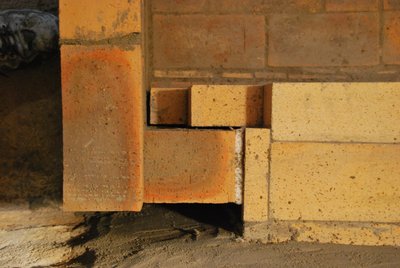 The facing bridges the connection on two pieces of salvaged angle bar. 8 courses of facing are layed before building the lower portion of the captivation chamber.
