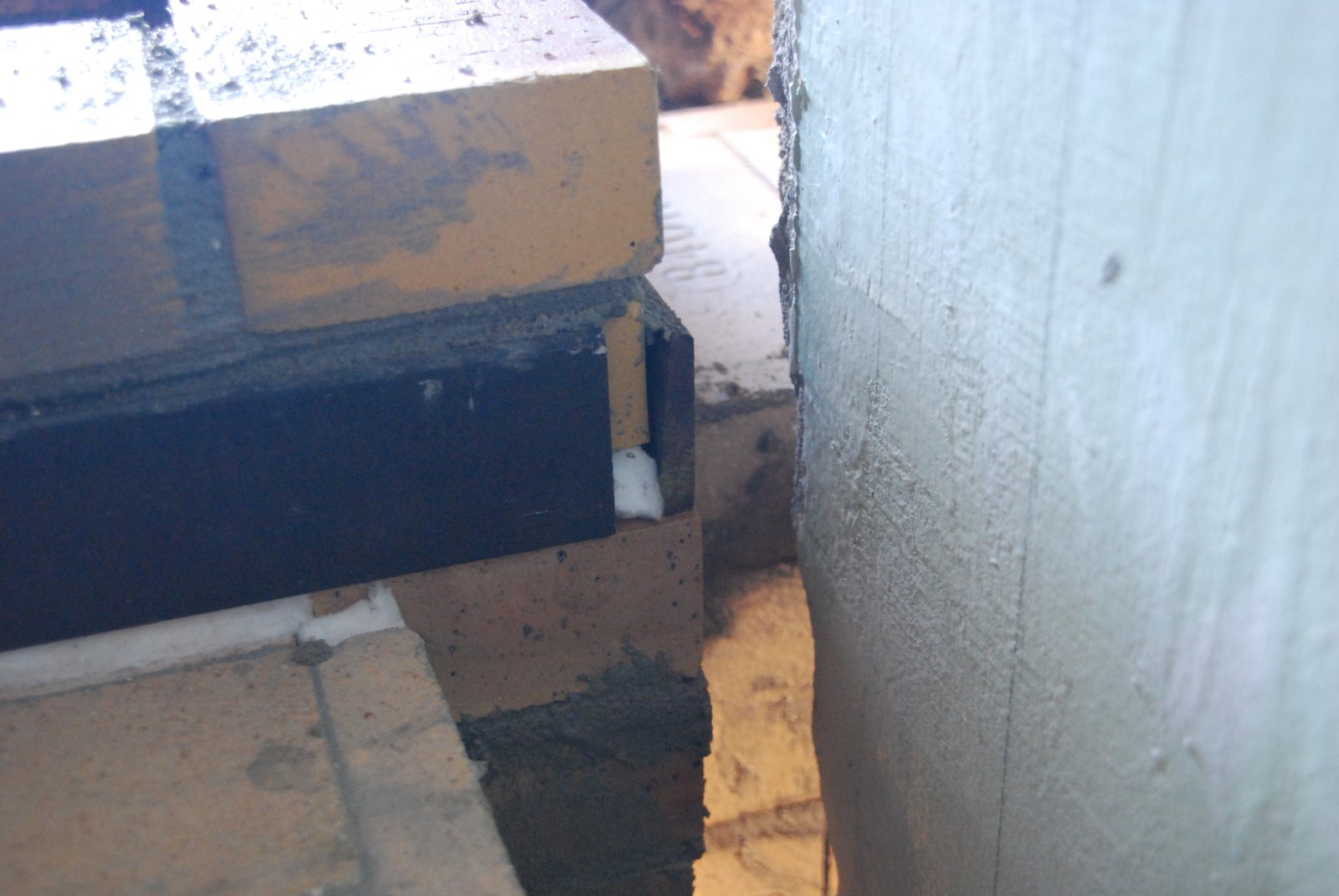 The capping brick that traverses the tunnel over the frame is cut back on its under side to allow the intrusion of the top of the frame and its wool expansion gasket.