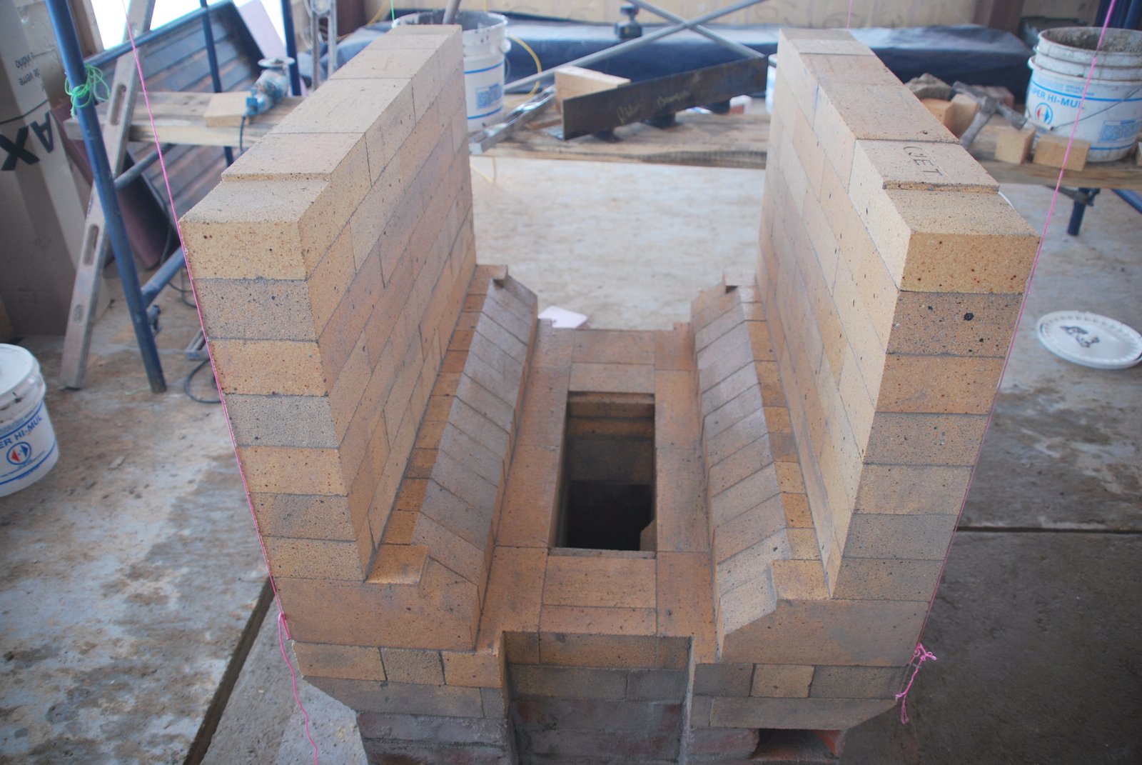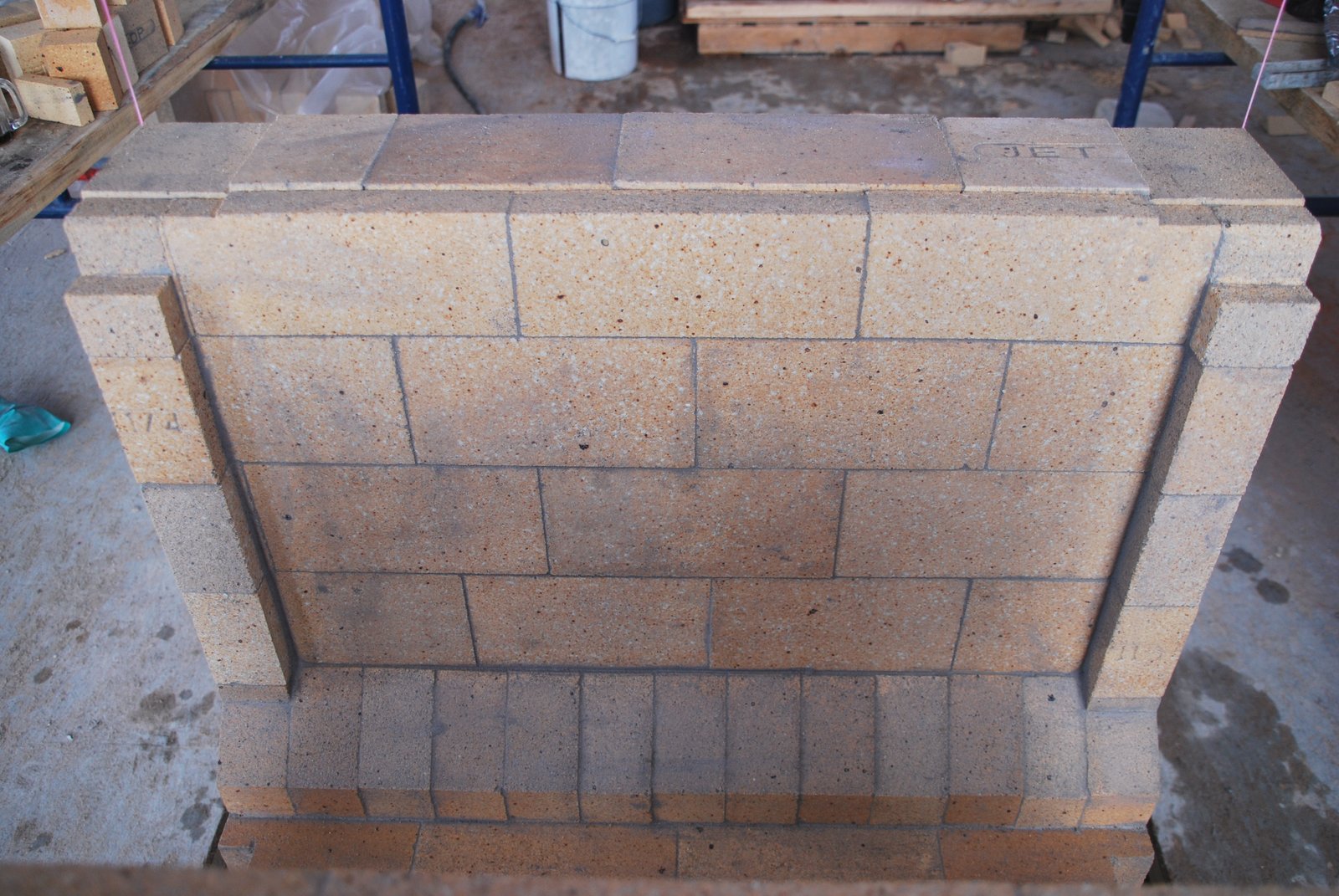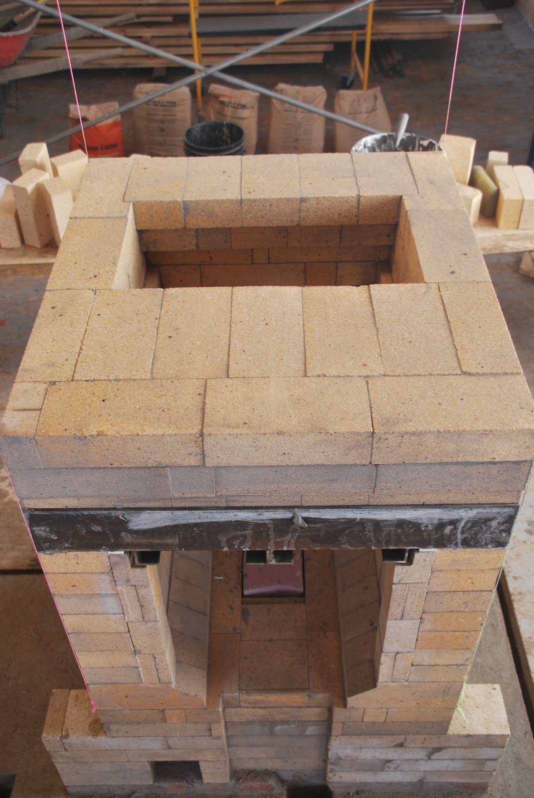The fire box walls and cut outs for the two lintels. The fire box walls, floor, and several courses above the lintel are in high duty brick.