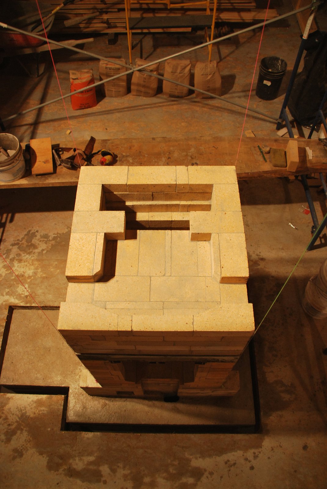 The completed second course. Symmetry is of little importance when corbeling above the fire box.
