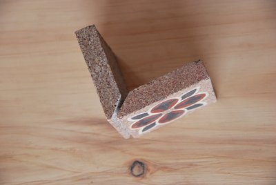 The surface of the recess cut to accommodate the lintel, is gasketed with a single leaf of aluminium foil. Before laying the foil an extremely thin layer of loose HTC is spread on to the surface of the brick, the foil layed, and then the lintel immediately put in place and moved rapidly from side to side. The function of the HTC beneath the foil gasket is to distribute evenly the weight of the core above the lintel, over the face of the brick. With a dry cut recess the lintel would inevitably rest only on certain points on the cut surface, creating pressure points in what is an important brick. The foil also provides a slip joint allowing the lintel to slide over the brick, and a bond brake to prevent the HTC on the brick below sticking to the lower surface of the lintel.