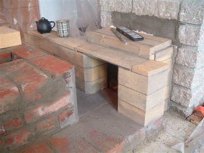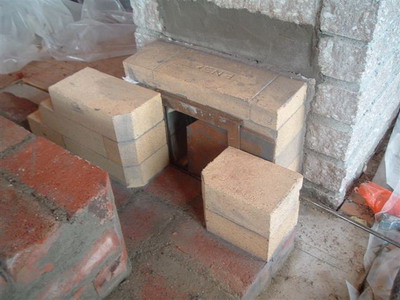 The first course of the hearth bridges the rear manifold the whole of one corner resting upon the lintel.