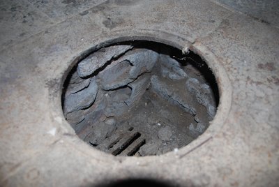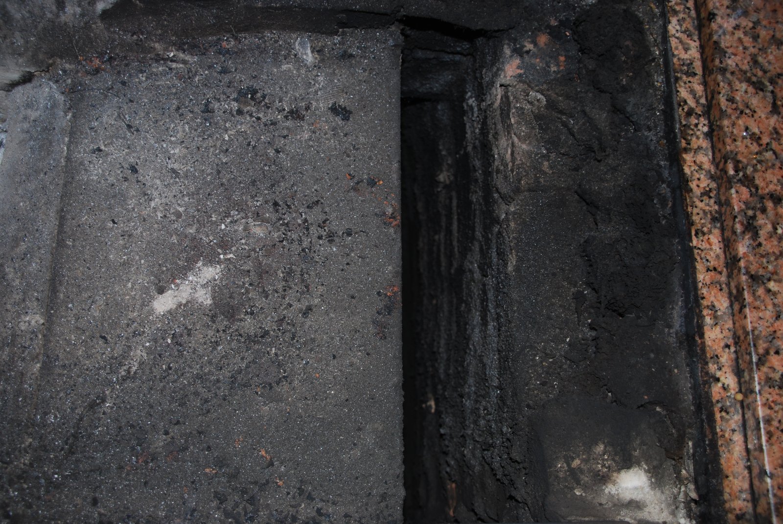 The upper portion of the smoke path. From left: fire box, oven and down channel.