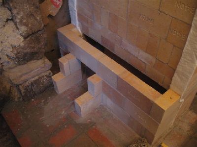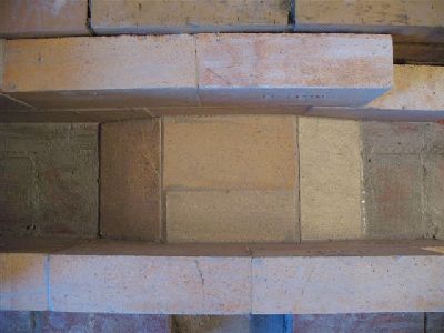 Bridging of the opening. Note the angled piece of brick layed over the protruding edge of the rear manifold wall.