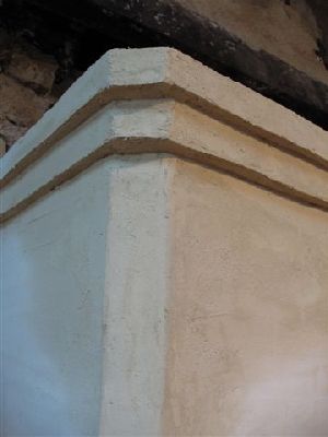 The original masonry of this wall is layed in earth mortar. Superficial repairs have been made in lime mortar.