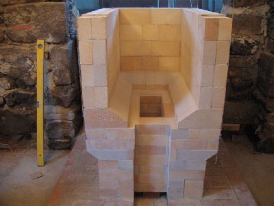 - the construction of a Refractory brick transfer tunnel or "bench" which will run round three sides of the heater