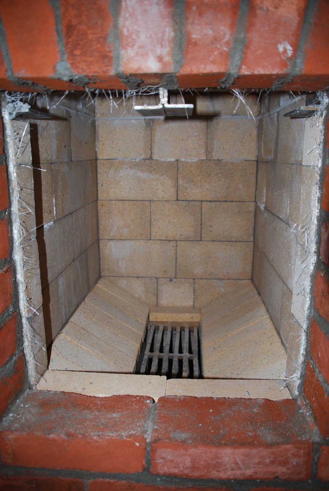 The floor of the fire box is made of skew cut shiners the walls of 4 courses of double wythe brick layed as shiners. This gives the option of replacing the inner wythe of shiners should they ever deteriorate.