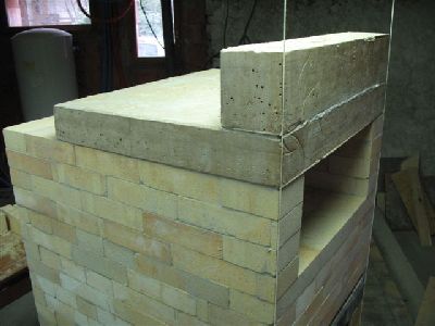 The rear wall is separated from the oven slab by a cardboard gasket which is removed after the wall has been layed.
