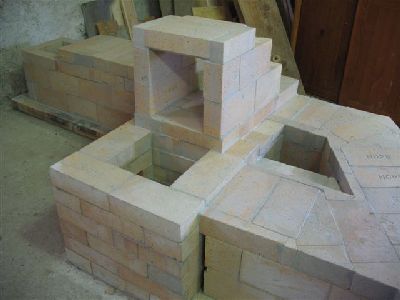 on the base course of common brick. Pieces of scrap refractory brick were used to support the overhanging channel.
