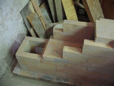 The chimney will be continued in 230 mm round flue tiles that will rest upon the refractory brick base.