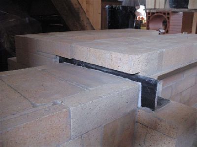A piece of 6 mm angle bar is used to bridge the opening in the manifold wall and support the brick which will close the manifold.