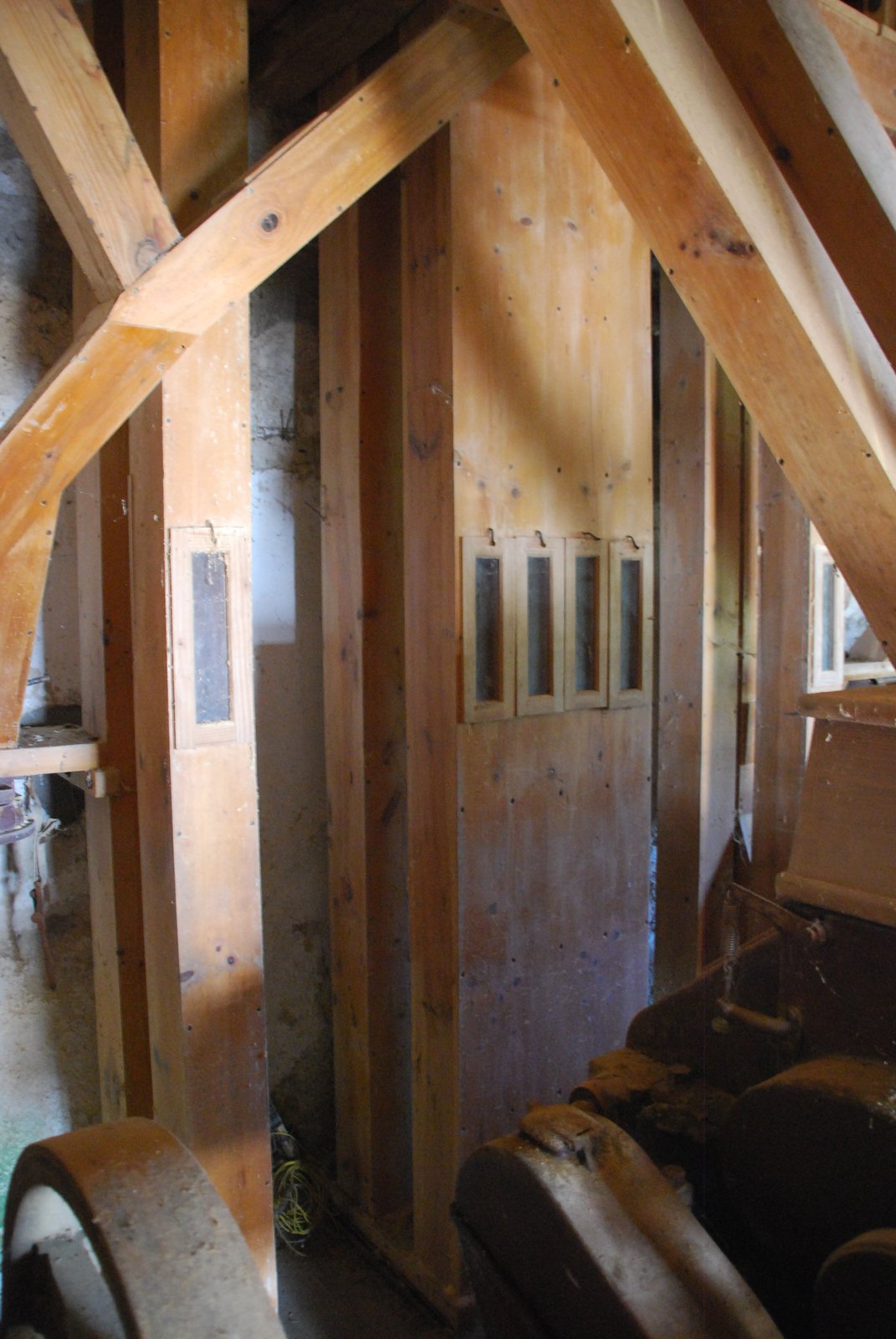 Canvas conveyor belts carried the ground grain through the wooden ducts to the upper floor.