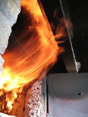 The lintel of the avaloire is backed with refractory brick splits, but even so is receiving considerable thermal shock .