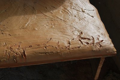 When just a small amount of clay is needed to finish, it can be scraped from the floor.