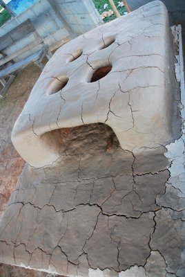 The top has been closed using re-bar and scrap pieces of tin to hold the clay in place.