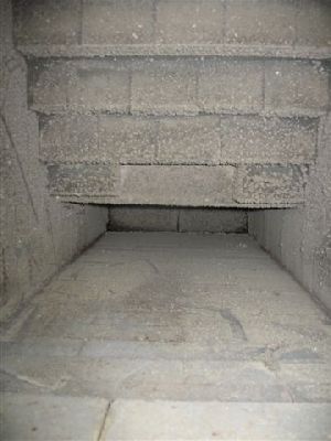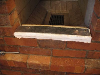 View of the cores lintel and the arch in the facing over the fire box loading opening.