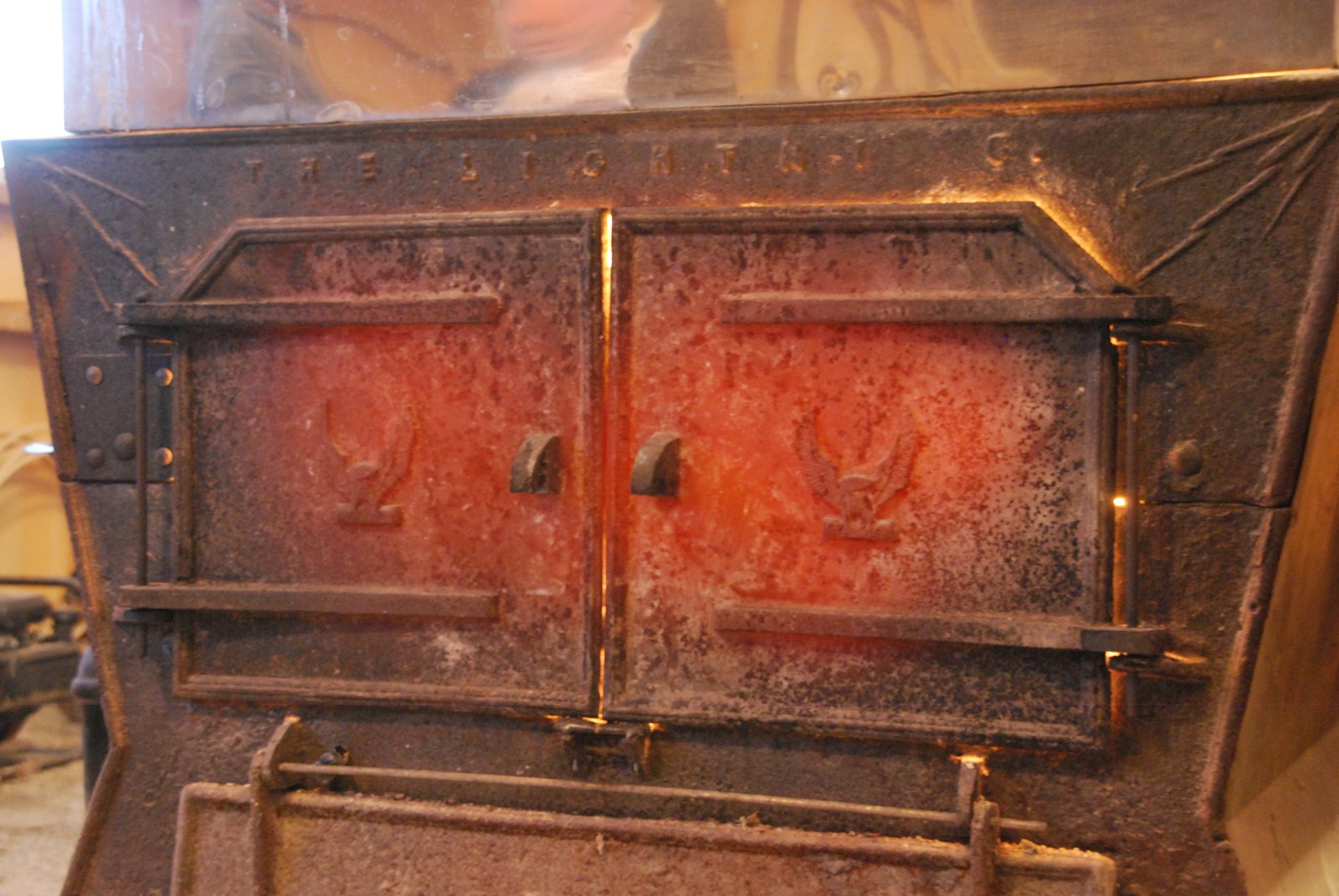 An electric fan blows combustion air up through the grate of the large arch to increase the draw and raise the temperature. The finishing arch has no fan.