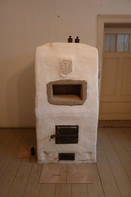 North American style contraflow stove with white upper chamber oven and heated platform. Assistance from: Mirian Blahut