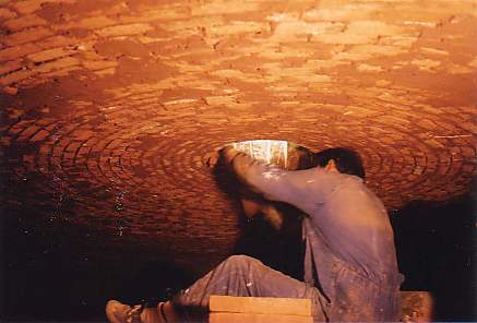 Filis Jimenes almost at the key in this large hand built oven, that has since been demolished.