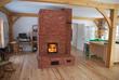Finish style Contra Flow masonry heater, faced in reclaimed brick from the 1930s