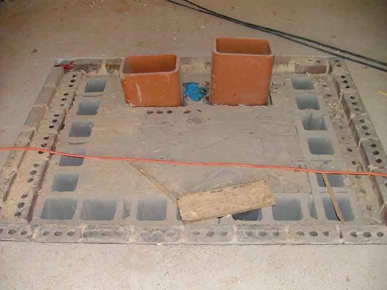 22, front oven, heated bench, slab on grade. Custom insulated bake oven