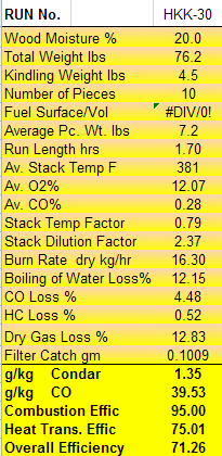 Slightly lower PM due to warm heater. Very consistent CO and efficiency with yesterday