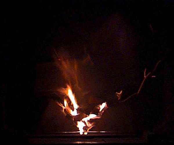 Today, we did run 7 of a 10 run series with a controlled wood load. All pieces in a given run have the same moisture content, and are split from hardwood boles between 8" and 14" in diameter. The wood load consists of 8 pieces and 2 lb kindling. The pieces are stacked in a 2-3-3 log cabin configuration. The two top rows are stacked tight, with the bark down (see fuel load photo). Today's run went fairly smoothly. We stacked the smaller pieces in the middle row, with larger pieces on top. The top ones were packed tight, and they burned a little slowly. Notice the change when the pile was poked after the 50 minute reading. Today's load was 12 lbs more than yesterday, resulting in a 0.5 Kw higher average output over 24 hours.